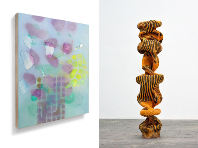 Eine Begegnung aktueller Gemälde von David John Flynn mit Flechtskulpturen von Susanne Thiemann.